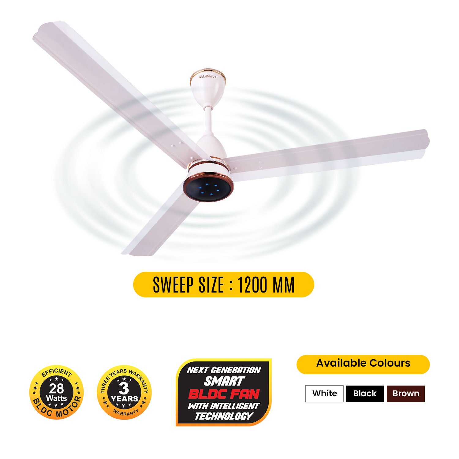 Blueberry's 1200mm BLDC Ceiling Fan with Remote Control, BEE 5-Star Rated